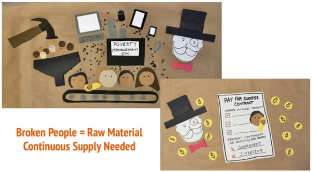 Some critics, with whom it is no doubt clear I agree, have gone further in their denunciations of social impact investing by arguing that it entrenches societal-wide perverse incentives for conditions of inequality and scarcity. [98]