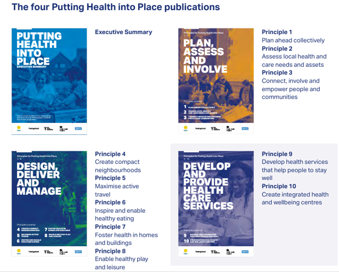 The ‘key lessons’ from the Healthy New Towns programme were distilled into four publications overseen by a team drawn from the NHS, Public Health England, the Town and Country Planning Association, The King’s Fund, The Young Foundation and PA Consulting. [24]